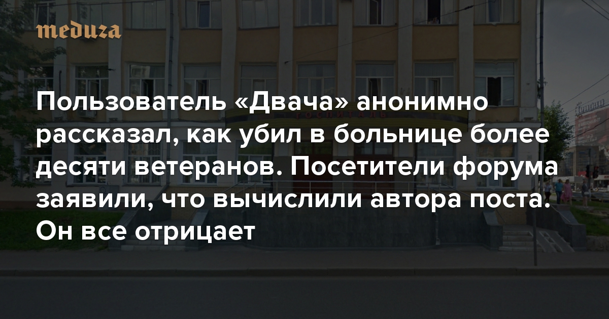 Пользователь «Двача» анонимно рассказал, как убил в больнице более десяти ветеранов. Посетители форума заявили, что вычислили автора поста. Он все отрицает