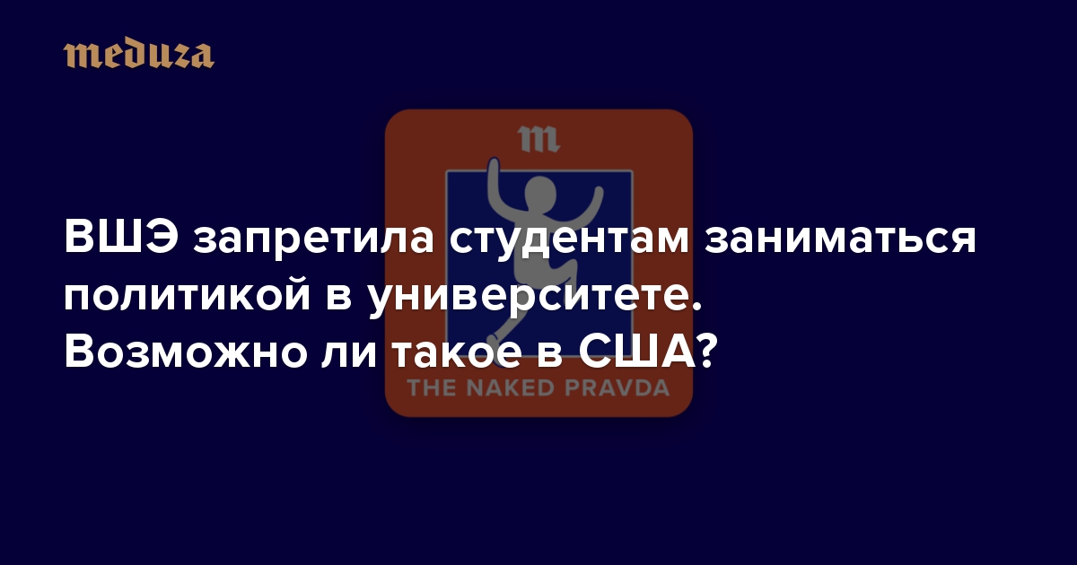 Шеф-редактор международной версии «Медузы» Кевин Ротрок в седьмом эпизоде подкаста The Naked Pravda разбирается в конфликте студентов и руководства Высшей школы экономики. Вместе с российскими и американскими экспертами Кевин выясняет, как университеты в России и США реагируют на студенческие политические выступления.