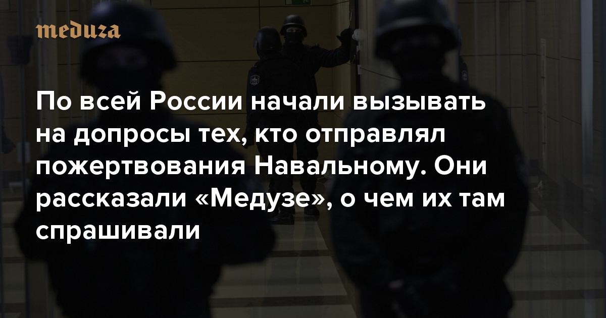 «Им нужен один потерпевший, чтобы построить дело» По всей России начали вызывать на допросы тех, кто отправлял пожертвования Навальному. Они рассказали «Медузе», о чем их там спрашивали