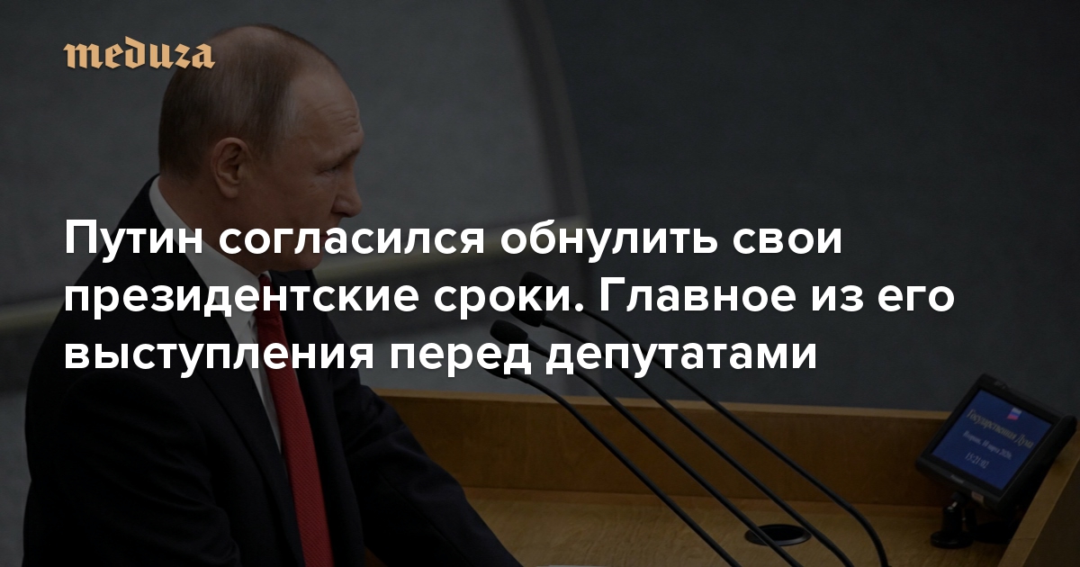Путин согласился обнулить свои президентские сроки. Главное из его выступления перед депутатами (вдруг вы не смотрели)