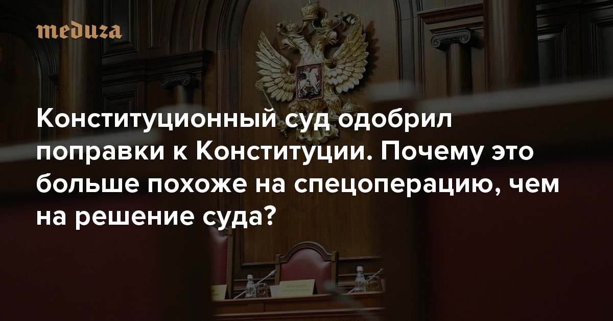 - Конституционный суд вместо того, чтобы защищать Конституцию и давать правовое заключение о конституционности поправок, явил миру их обоснование — по сути, пояснительную записку к законопроекту.