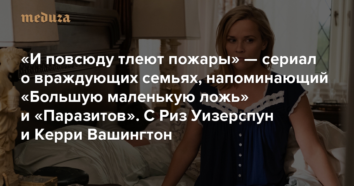 На сервисах Hulu и ivi вышли первые эпизоды мини-сериала «И повсюду тлеют пожары» — провокационной драмы об отношениях между двумя непохожими семьями в идеальном американском пригороде конца 1990-х. Главные звезды и одновременно продюсеры сериала — актрисы Риз Уизерспун и Керри Вашингтон. Кинокритик Егор Москвитин рассказывает о шоу, которое одновременно напоминает и «Большую маленькую ложь», и «Паразитов».