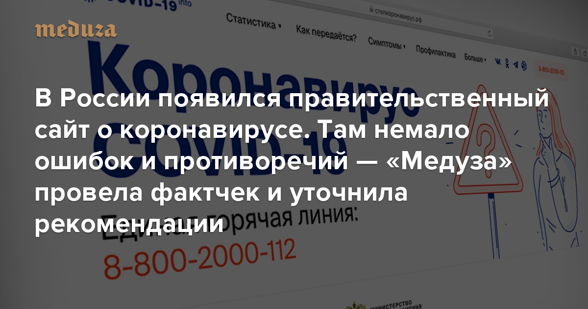 В России появился правительственный сайт о коронавирусе. Там немало ошибок и противоречий «Медуза» провела фактчек и уточнила рекомендации