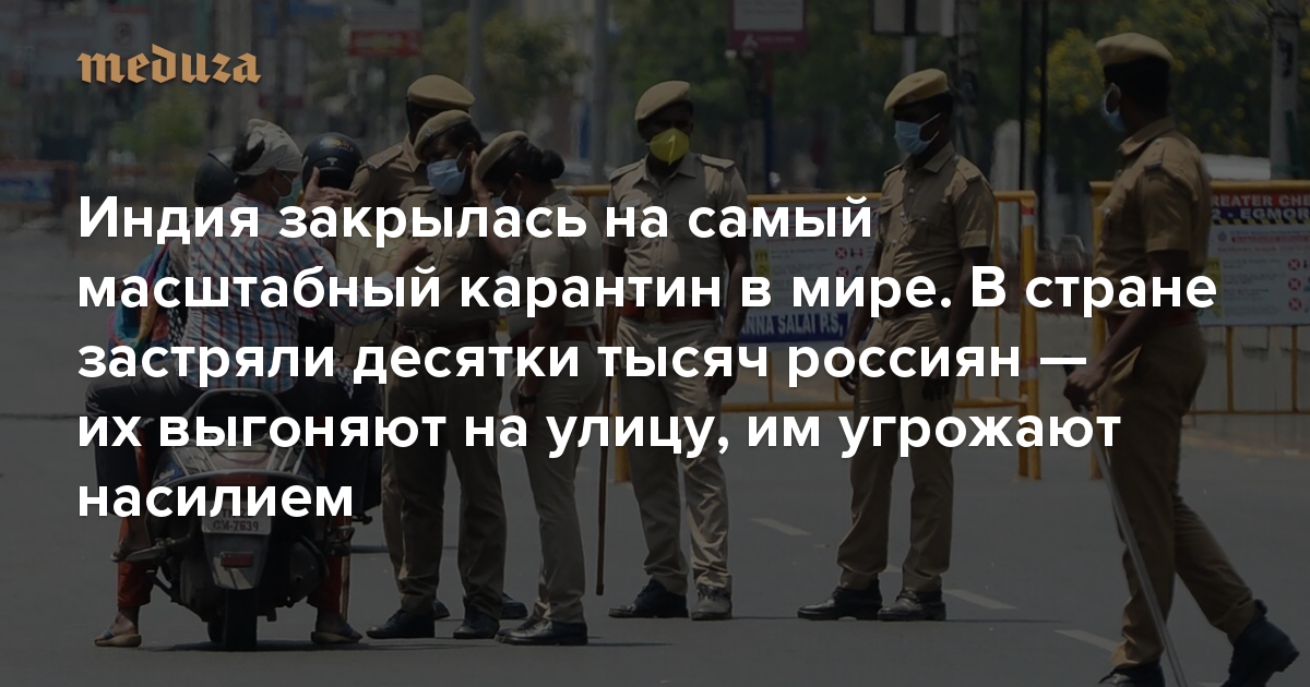 Индия закрылась на самый масштабный карантин в мире: людям запретили даже выходить из дома В стране застряли десятки тысяч россиян — их выгоняют на улицу, им угрожают насилием