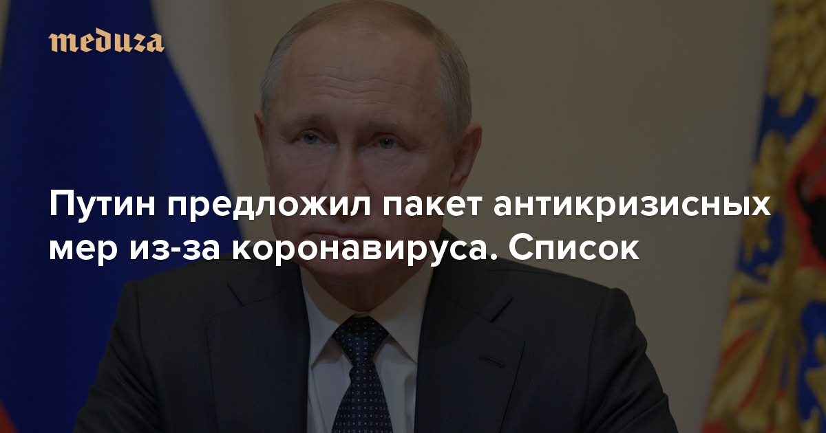 Президент Владимир Путин 25 марта выступил с обращением к гражданам России из-за эпидемии коронавирусной инфекции COVID-19. В ходе выступления, которое транслировали центральные телеканалы, глава государства объявил о переносе голосования по поправкам в Конституцию (новую дату определят позже), а также назвал дополнительные меры поддержки граждан и бизнеса во время кризиса. Вот список этих мер.