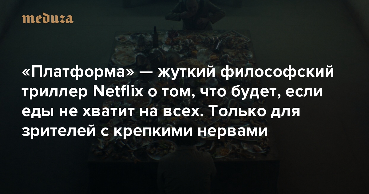 На Netflix вышел испанский триллер «Платформа» режиссера Гальдера Гастелу-Уррутия. Его герои находятся в многоэтажной тюрьме, похожей на башню. Раз в день по колодцу в центре здания опускается платформа с едой. Еды могло бы хватить на всех заключенных, однако узники нижних этажей умирают от голода или становятся каннибалами, пока те, кто оказался наверху, пируют. Кинокритик Егор Москвитин рассказывает, почему этот фильм может напугать чувствительного зрителя и стать таким же каноническим, как «Куб» Винченцо Натали.