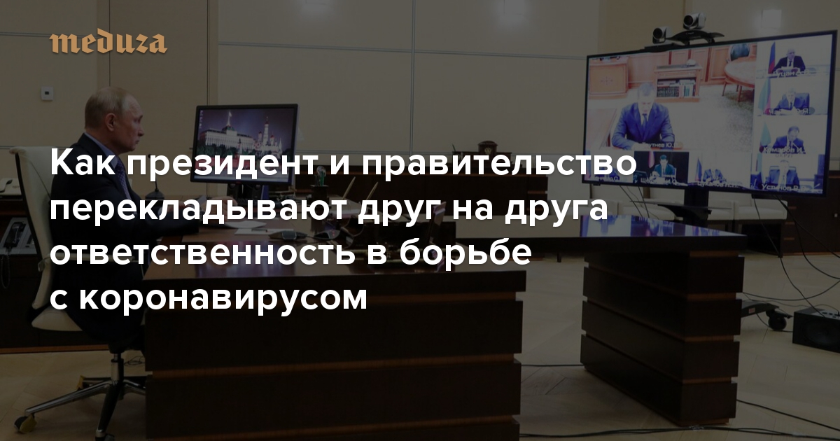 Главный противник введения жестких ограничительных мер в связи с коронавирусом на уровне всей страны — президент Владимир Путин. Об этом рассказали несколько источников «Медузы», близких к правительству и администрации президента (АП). По словам собеседника «Медузы», близкого к Кремлю и знакомого с работой федерального оперативного штаба по борьбе с коронавирусом, Путин воспринимает введение чрезвычайных мер как непопулярное решение, которое может понизить его рейтинг, и не хочет делать это самостоятельно. Все основные решения президент перекладывает на правительство в лице премьер-министра Михаила Мишустина.