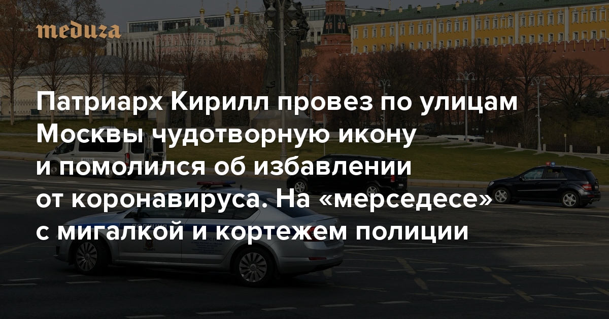 Патриарх Кирилл провез по улицам Москвы чудотворную икону и помолился об избавлении от коронавируса. На «мерседесе» с мигалкой и кортежем полиции