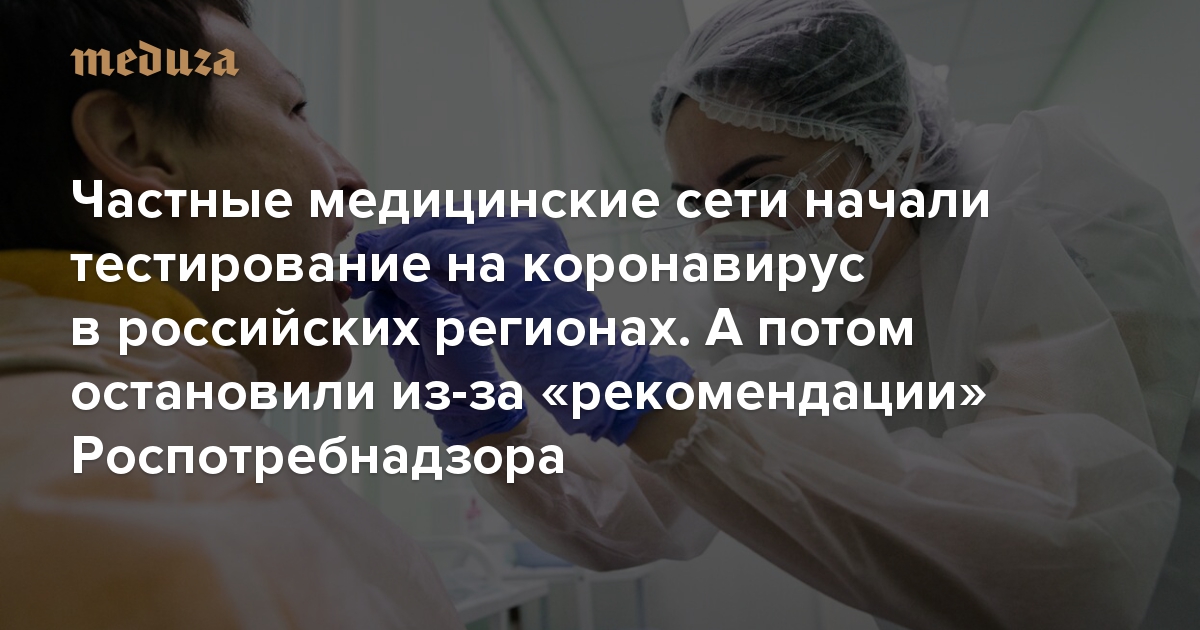 Несколько крупнейших сетей медицинских лабораторий начали делать в российских регионах тесты на коронавирусную инфекцию — а затем резко прекратили, ссылаясь на появление рекомендаций от Роспотребнадзора. Параллельно государственное ведомство запустило собственное платное тестирование на COVID-19, пообещав организовать его во всех регионах страны.
