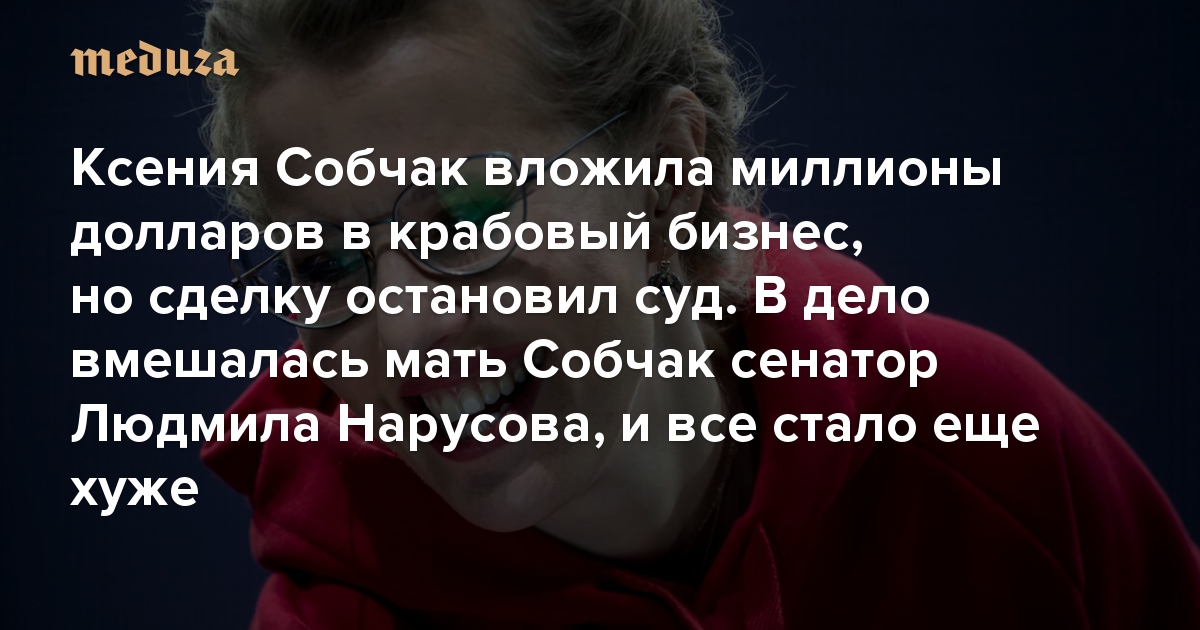 Ксения Собчак вложила миллионы долларов в крабовый бизнес, но сделку остановил суд. В дело вмешалась мать Собчак сенатор Людмила Нарусова, и все стало еще хуже