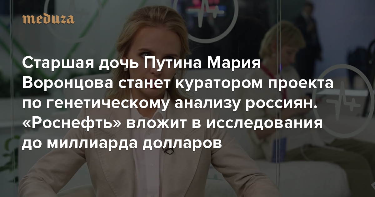 Старшая дочь Путина Мария Воронцова станет куратором проекта по генетическому анализу россиян. «Роснефть» вложит в исследования до миллиарда долларов Главное из расследования «Русской службы Би-би-си»