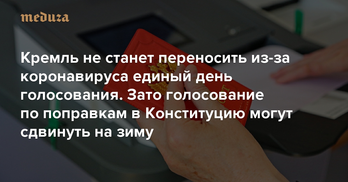 Кремль не станет переносить из-за коронавируса единый день голосования, запланированный на сентябрь Зато голосование по поправкам в Конституцию могут сдвинуть на зиму