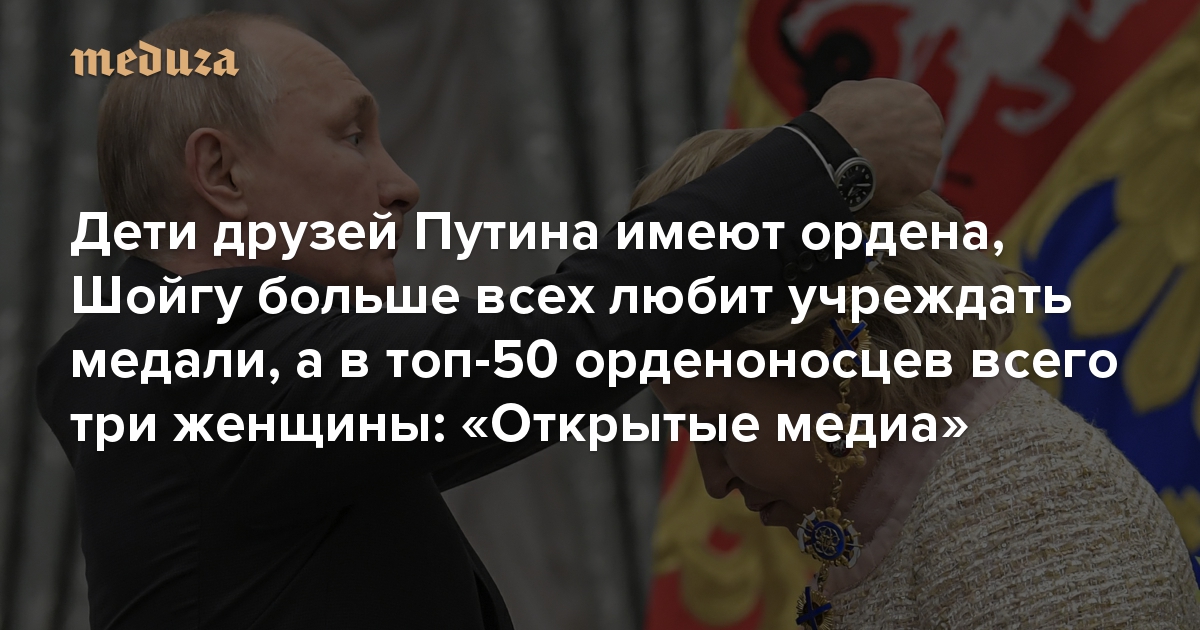 Дети друзей Путина имеют ордена, Шойгу больше всех любит учреждать медали, а в топ-50 орденоносцев всего три женщины «Открытые медиа» рассказали о системе государственных наград в России