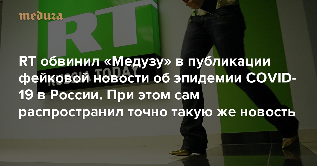 RT обвинил «Медузу» в публикации фейковой новости об эпидемии COVID-19 в России. При этом сам распространил точно такую же новость
