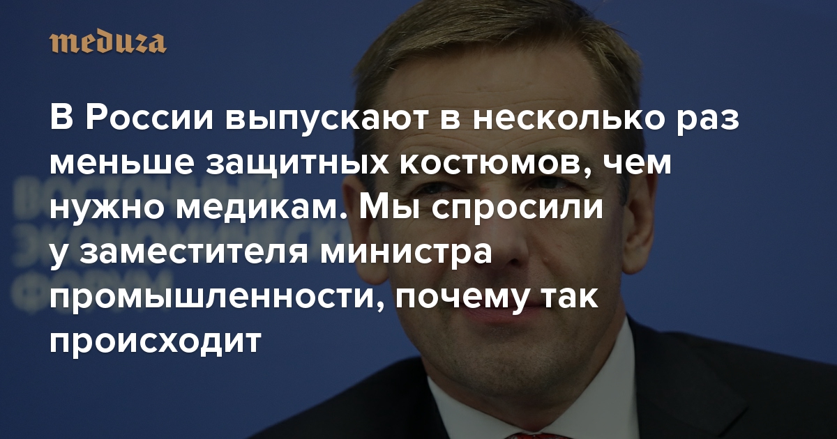 В России выпускают в несколько раз меньше защитных костюмов, чем нужно медикам. Мы спросили у заместителя министра промышленности, почему так происходит