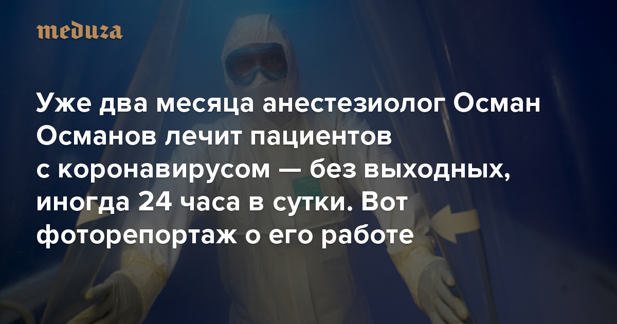 Уже два месяца анестезиолог Осман Османов лечит пациентов с коронавирусом — без выходных, иногда 24 часа в сутки. Вот фоторепортаж о его работе