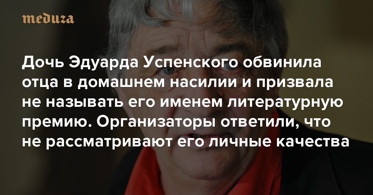 Дочь Эдуарда Успенского обвинила отца в домашнем насилии и призвала не называть его именем литературную премию Организаторы ответили, что «не рассматривают личные качества» писателя