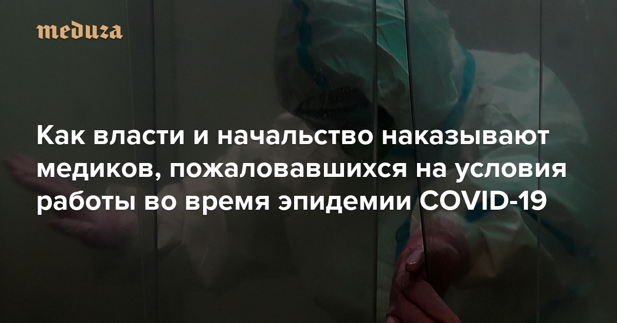 Иногда для наказания нелояльных врачей используется сама ситуация пандемии: собеседник «Медузы», попросивший не раскрывать его имя из-за угрозы увольнения, рассказал, как его коллегу насильно перевели на работу с больными COVID-19, не обеспечив средствами защиты. Врач восприняла это как попытку подвергнуть ее жизнь опасности. «Человек работал на одной должности — его вызывают и говорят, что с понедельника ты идешь работать в инфекционное отделение с температурящими больными. А не хочешь выходить — значит, совсем увольняйся. Просто ставят перед фактом. Не на смерть отправляют, но… Оно принимает больных температурящих — мы же не знаем, коронавирус это или нет. Пока возьмут анализ, пока придет результат, ты уже с ним поработал!» — делится собеседник «Медузы».