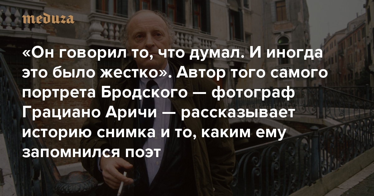 «Он говорил то, что думал. И иногда это было жестко» Настоящий автор того самого портрета Бродского — фотограф Грациано Аричи — рассказывает историю снимка и то, каким ему запомнился поэт