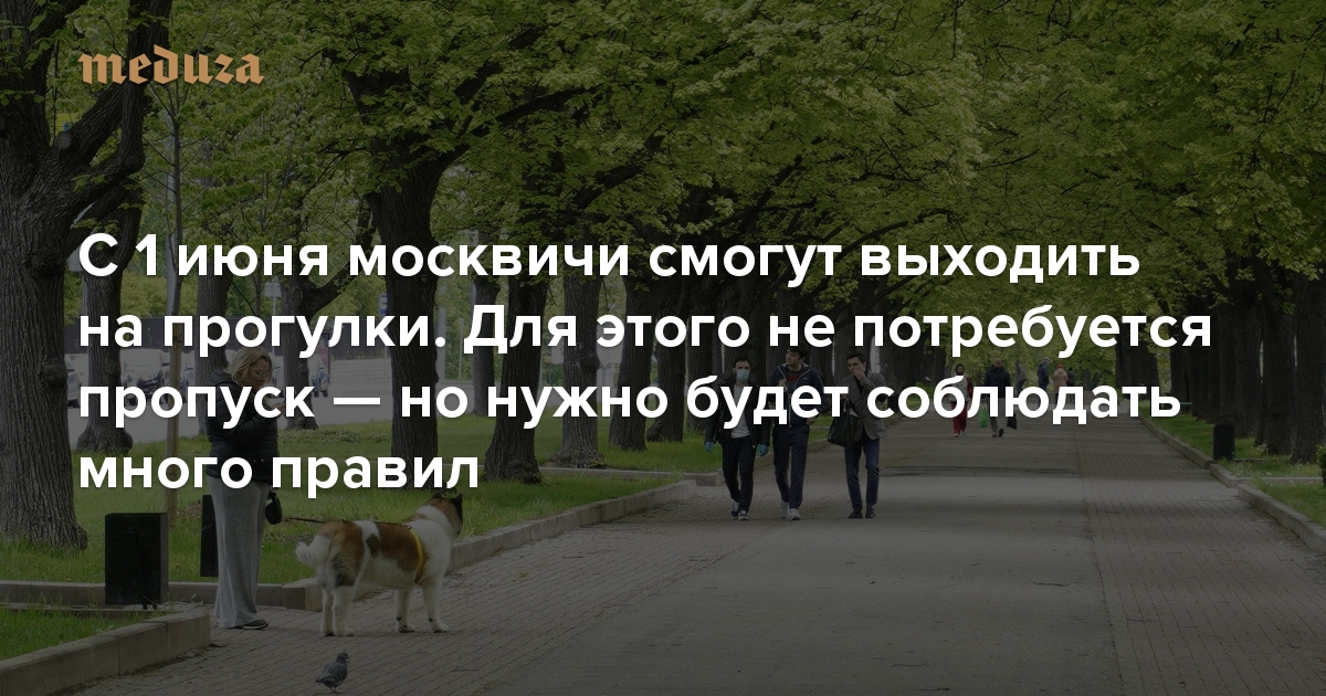 С 1 июня москвичи смогут выходить на прогулки. Для этого не потребуется пропуск — но нужно будет соблюдать много правил