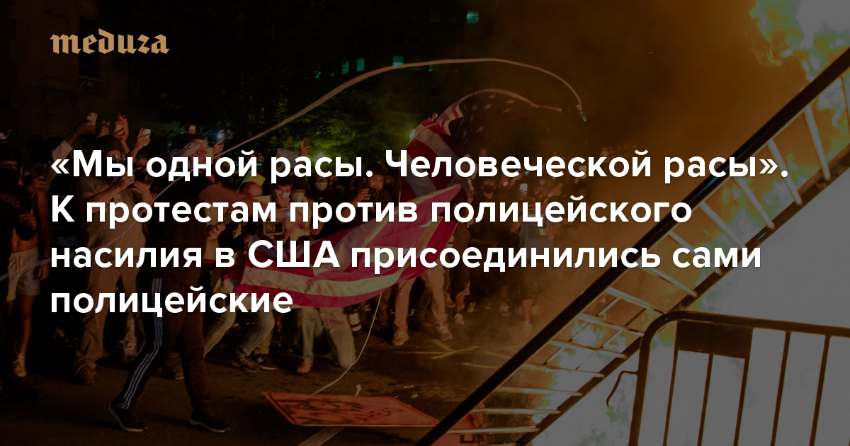 «Мы одной расы. Человеческой расы» К протестам против полицейского насилия в США присоединились сами полицейские. Массовые акции теперь проходят по всей стране