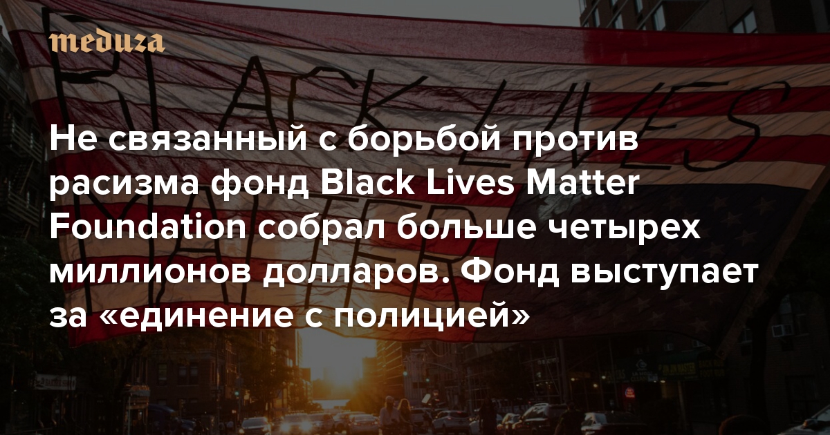 Не связанный с борьбой против расизма фонд Black Lives Matter Foundation собрал больше четырех миллионов долларов пожертвований Фонд выступает за «единение с полицией»