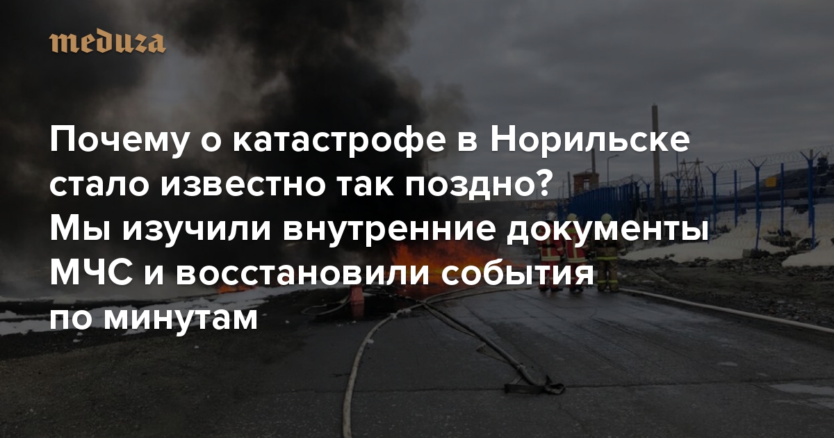 Почему о катастрофе в Норильске стало известно так поздно? Чтобы выяснить это, мы изучили внутренние документы МЧС и восстановили события по минутам