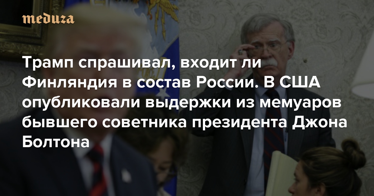 Трамп спрашивал, входит ли Финляндия в состав России В США опубликовали выдержки из мемуаров бывшего советника президента Джона Болтона. Минюст подал в суд, чтобы остановить выпуск книги