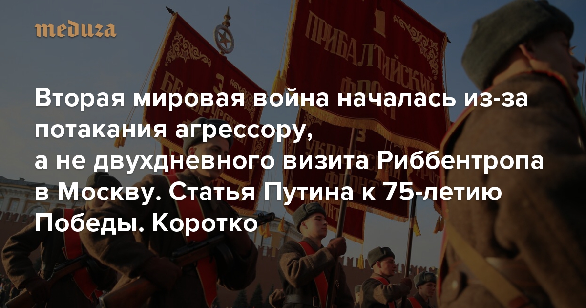 Вторая мировая война началась из-за потакания агрессору, а не двухдневного визита Риббентропа в Москву Статья Путина к 75-летию Победы. Коротко