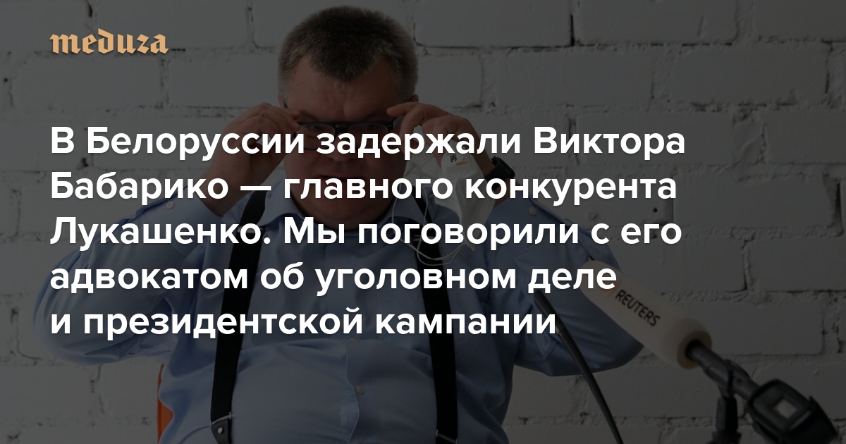 Вечером 19 июня в различных белорусских городах продолжились акции протеста — и задержания их участников. Пикеты активизировались после того, как 18 июня в Минске были задержаны кандидат в президенты Белоруссии Виктор Бабарико и его сын. Власти назвали Бабарико «руководителем противоправной деятельности» в Белгазпромбанке, который Бабарико возглавлял 20 лет. Одновременно глава Белоруссии Александр Лукашенко объявил, что властям удалось «сорвать масштабный план дестабилизации Беларуси», который мог бы «привести страну к некоему майдану». На следующий день «Медуза» поговорила с адвокатом Бабарико Дмитрием Лаевским о том, что происходит с делом кандидата в президенты, и намерен ли тот отказаться от участия в выборах.