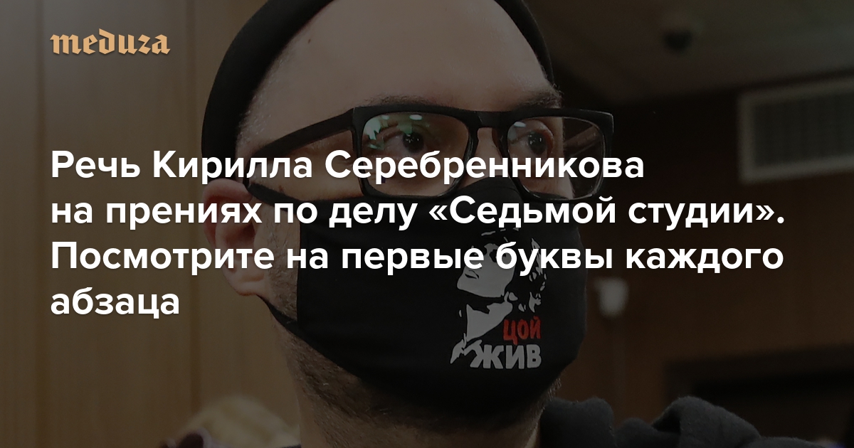 «Ни о чем не жалею. Сочувствую вам» Речь Кирилла Серебренникова на прениях по делу «Седьмой студии». Посмотрите на первые буквы каждого абзаца