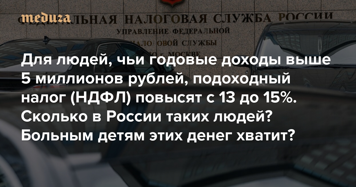Для людей, чьи годовые доходы выше 5 миллионов рублей, подоходный налог (НДФЛ) повысят с 13 до 15%. Сколько в России таких людей? Больным детям этих денег хватит?