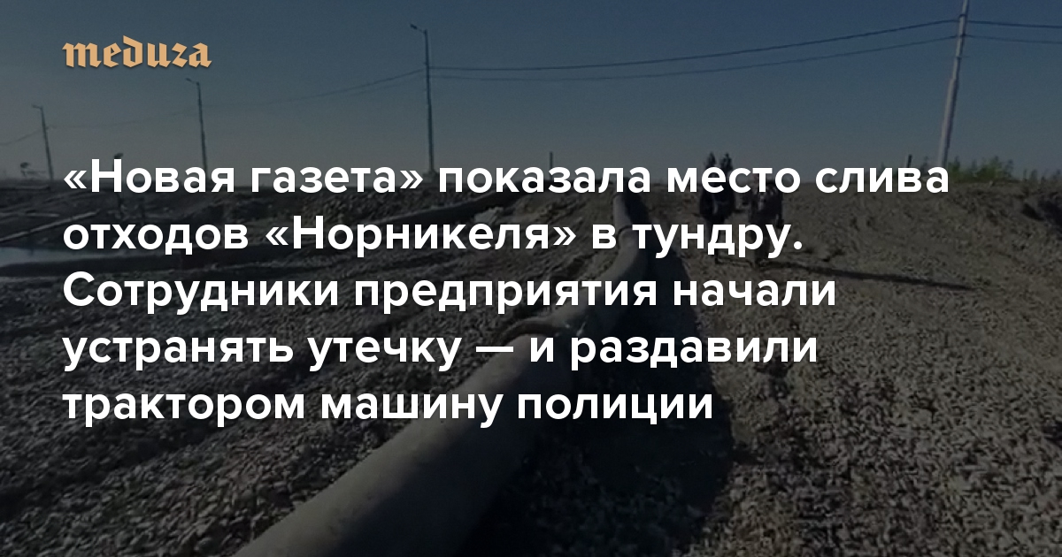 «Новая газета» показала место слива отходов «Норникеля» в тундру Сотрудники предприятия начали спешно устранять утечку — и раздавили трактором полицейскую машину