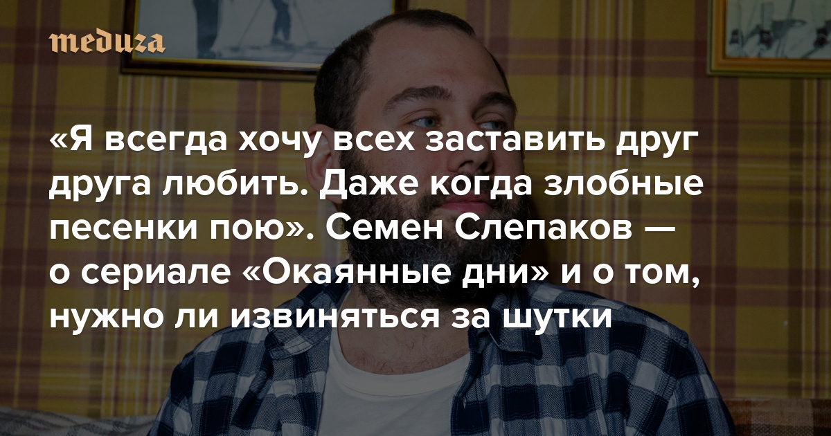 «Я всегда хочу всех заставить друг друга любить. Даже когда злобные песенки пою» Семен Слепаков — о сериале «Окаянные дни» и о том, нужно ли извиняться за шутки