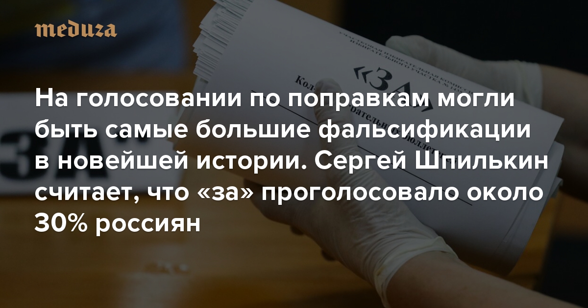 На голосовании по поправкам могли быть самые большие фальсификации в новейшей истории. Сергей Шпилькин считает, что «за» проголосовало около 30% россиян