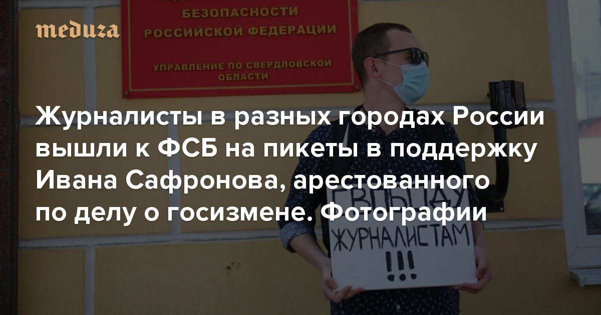 Журналисты в разных городах России начали устраивать у региональных управлений ФСБ акции в поддержку советника главы «Роскосмоса», бывшего корреспондента «Коммерсанта» и «Ведомостей» Ивана Сафронова, задержанного 7 июля по делу о госизмене. В Москве и Петербурге одиночные пикеты в поддержку Сафронова начались в день его ареста: московская полиция задержала 28 человек, петербургская — никого. Этот материал будет обновляться по мере появления новой информации.
