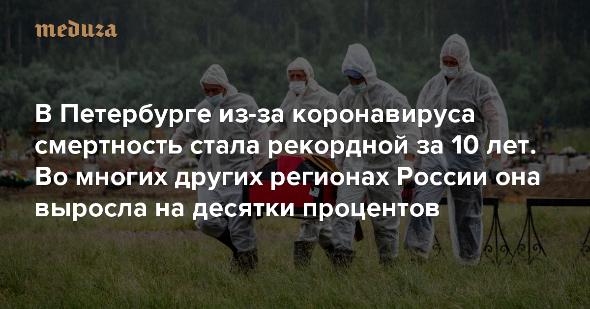 В Петербурге из-за коронавируса смертность стала рекордной за 10 лет. Во многих других регионах России она выросла на десятки процентов