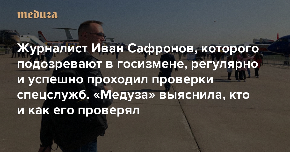 Журналист Иван Сафронов, которого подозревают в госизмене, регулярно и успешно проходил проверки спецслужб. «Медуза» выяснила, кто и как его проверял