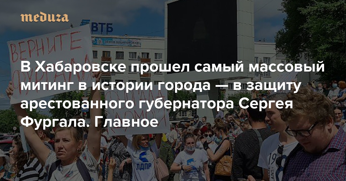 В Хабаровске прошел самый массовый митинг в истории города — в защиту арестованного губернатора Сергея Фургала. Главное