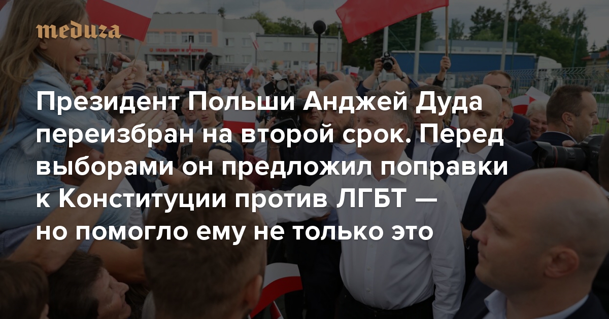 Президент Польши Анджей Дуда переизбран на второй срок. Перед выборами он предложил поправки к Конституции против ЛГБТ — но помогло ему не только это