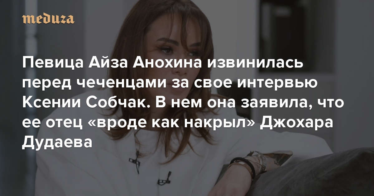 Певица Айза Анохина извинилась перед чеченцами за свое интервью Ксении Собчак. В нем она заявила, что ее отец «вроде как накрыл» Джохара Дудаева