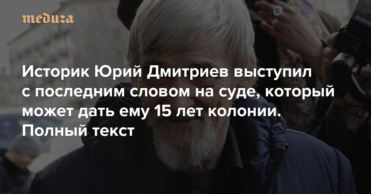 «Сила государства — не в танках и возможности послать всех к такой-то матери» Историк Юрий Дмитриев выступил с последним словом на суде, который может дать ему 15 лет колонии. Полный текст