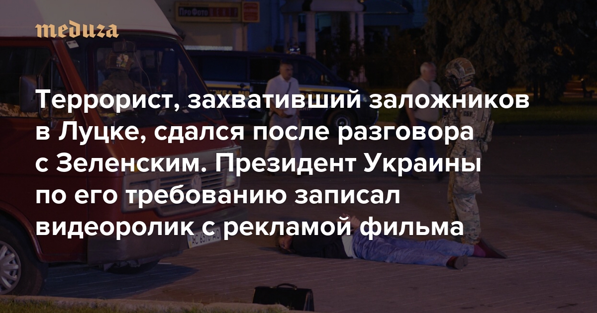 Террорист, захвативший заложников в Луцке, сдался после разговора с Зеленским. Президент Украины по его требованию записал видеоролик с рекламой фильма Что известно о захвате спустя сутки