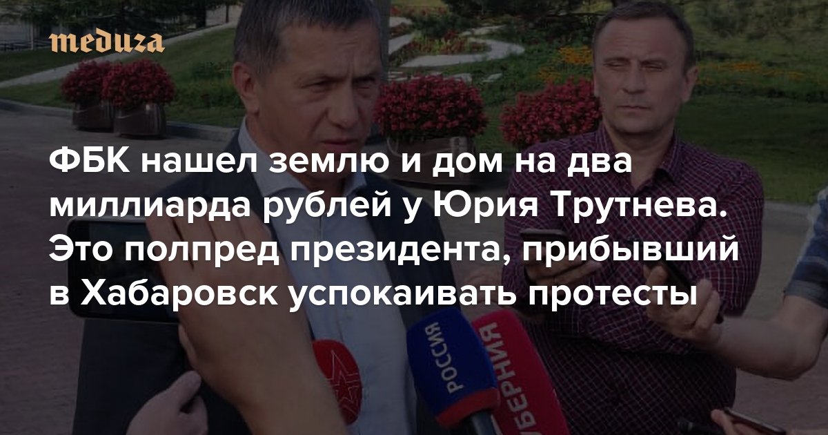 ФБК нашел землю и дом на два миллиарда рублей у полпреда президента Юрия Трутнева. Он один из самых богатых членов правительства В июле Трутнев прибыл в Хабаровск успокаивать протесты