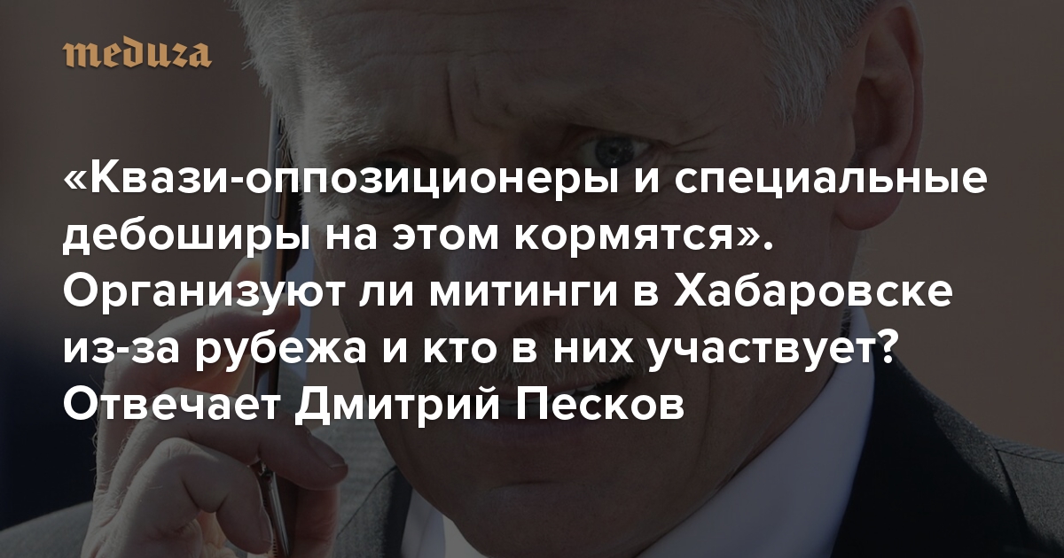 «Квази-оппозиционеры и специальные дебоширы на этом кормятся» Организуют ли митинги в Хабаровске из-за рубежа и кто в них участвует? Отвечает Дмитрий Песков