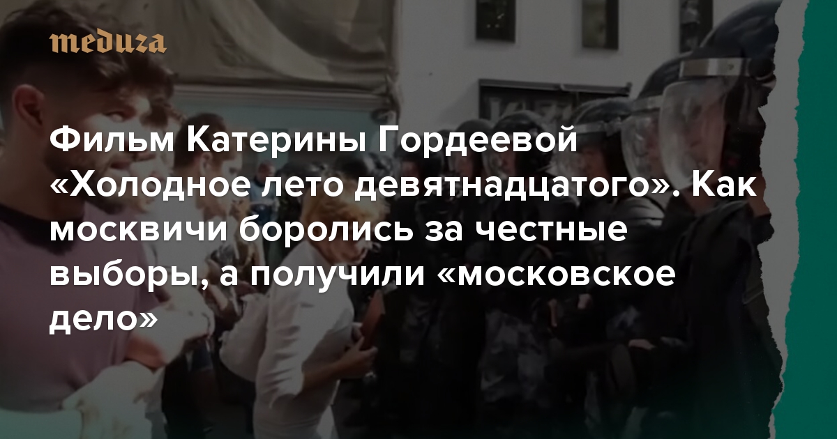 «Медуза» представляет: фильм Катерины Гордеевой «Холодное лето девятнадцатого» Как москвичи боролись за честные выборы, а получили «московское дело»