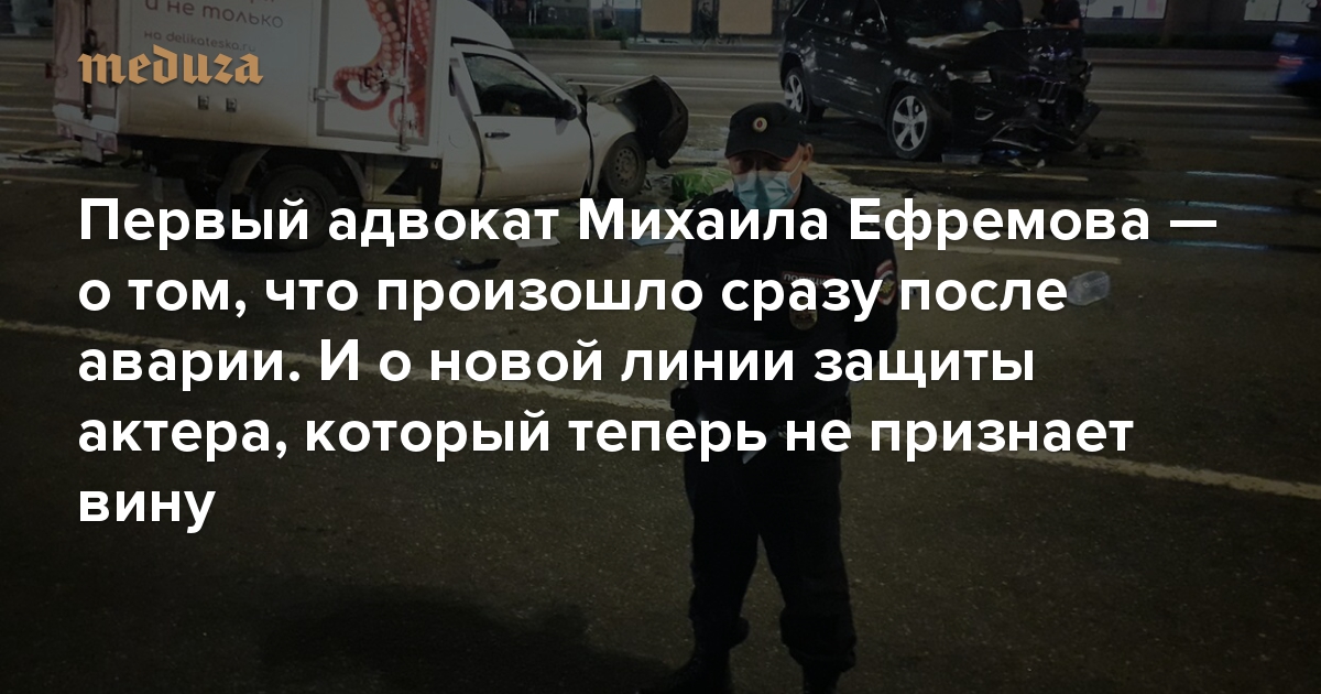 «Он понимал, что произошло ужасное ДТП» Первый адвокат Михаила Ефремова — о том, что произошло сразу после аварии. И о новой линии защиты актера, который теперь не признает вину