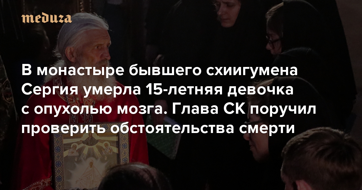 В монастыре бывшего схиигумена Сергия умерла 15-летняя девочка с опухолью мозга. Глава СК поручил проверить обстоятельства смерти Родители заявили, что в обители их дочь прожила семь месяцев — хотя врачи отводили ей два