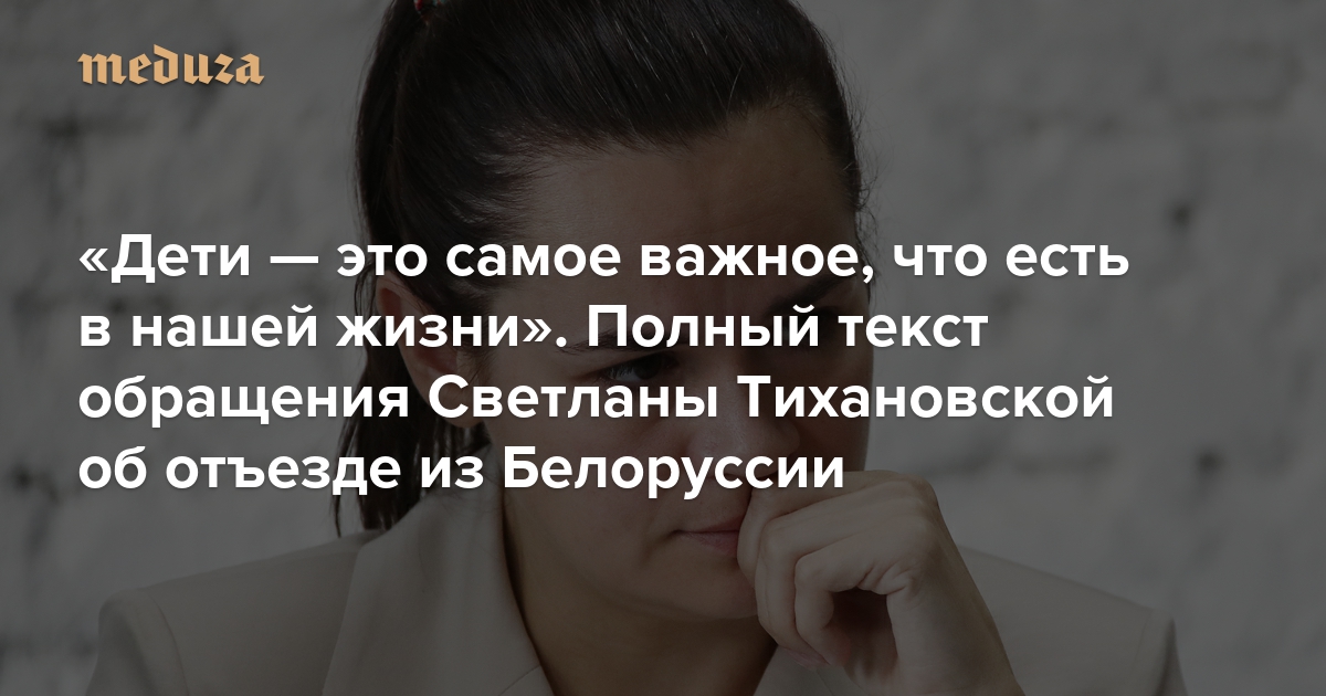 «Дети — это самое важное, что есть в нашей жизни». Полный текст обращения Светланы Тихановской об отъезде из Белоруссии