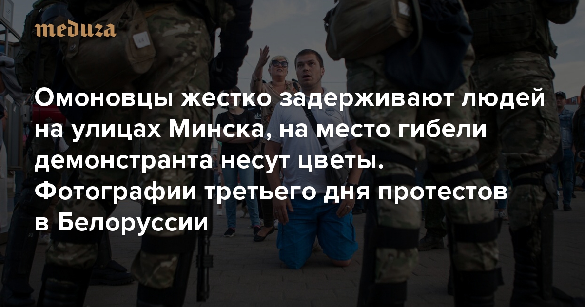 Омоновцы жестко задерживают людей на улицах Минска, на место гибели демонстранта несут цветы. Фотографии третьего дня протестов в Белоруссии